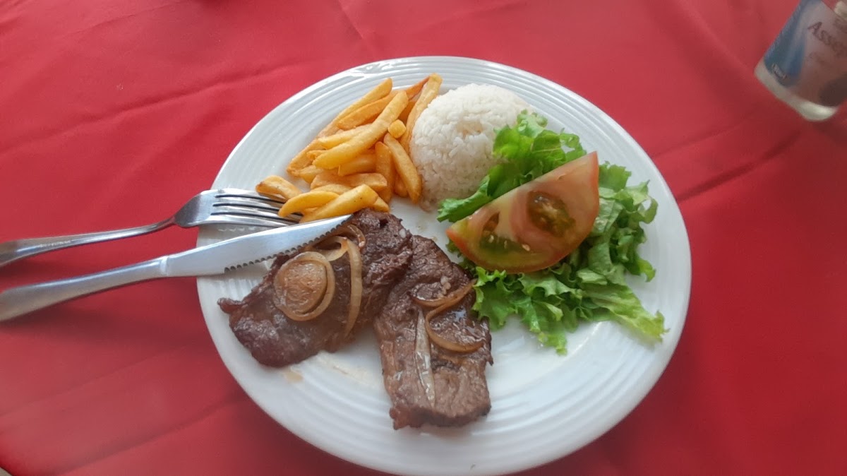 Everything was great! Restaurant that also offers breakfast food for people who get up late! It reminded us of back in Europe ⭐⭐⭐⭐⭐ A very friendly waitress was serving us natural orange juice and good omelette and Caldo. This place is air-conditioned! And even the bathrooms were nice.
